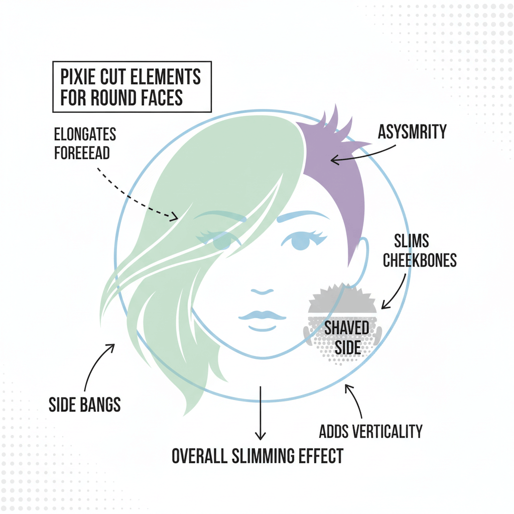 - The Asymmetrical Pixie: Longer on one side, shorter on the other. This cut is a master of illusion, creating angles and definition that beautifully complement a round face.