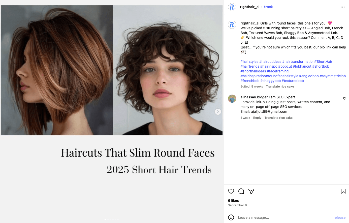 Known for its rich editorial content and hairstyle galleries, The Right Hairstyles includes light AI quizzes to guide users to hair inspirations. It’s less technical, more editorial — great for idea browsing.