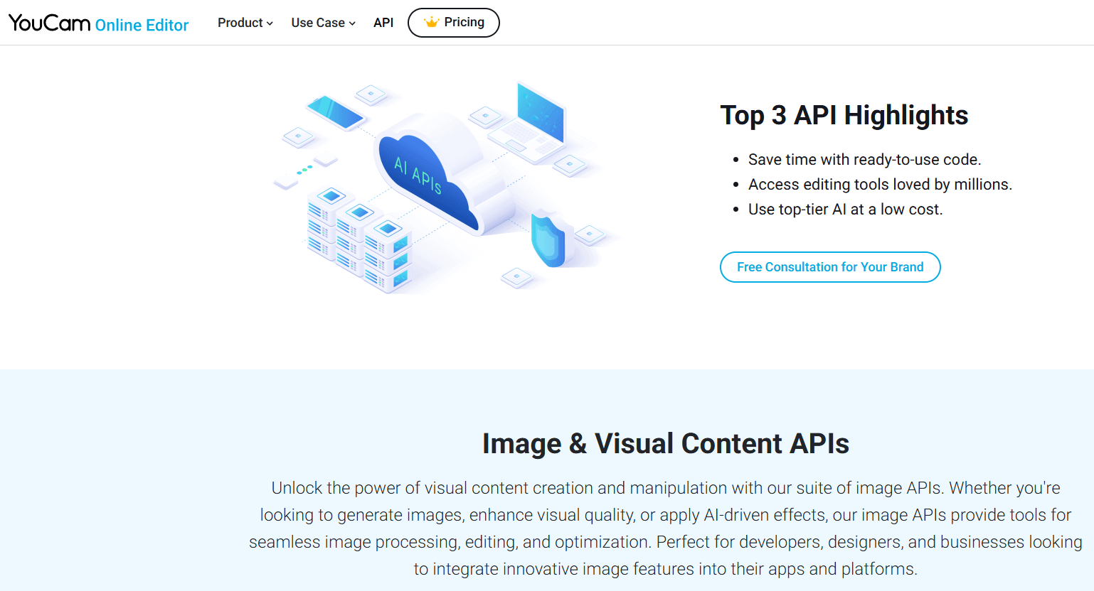 For businesses aiming to integrate advanced AI-powered image and video editing capabilities, Perfect Corp's YouCam Online Editor AI APIs offer a comprehensive solution. These RESTful APIs enable seamless incorporation of sophisticated visual enhancements into websites, e-commerce platforms, and mobile applications.