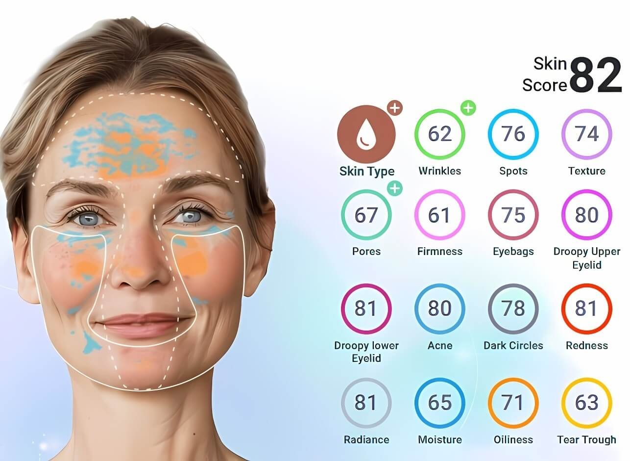 “The AI Skin Analysis is a great tool for educating patients about their skin,” Dr. Kay says. “The skin scores are helpful because people are unaware of all the underlying problems going on with their skin. When they see their skin score for spots, redness, oiliness, pore size, and other conditions, you can tell them about melasma, increased vascularity, and the other root causes that we can treat. In the absence of this kind of data, they are liable to just throw on moisturizer and not take the measures to get data driven results.”