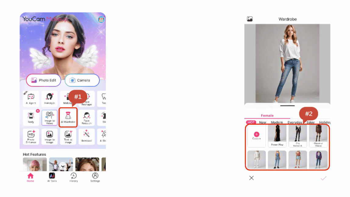 Launch the YouCam Makeup app and select AI Wardrobe.