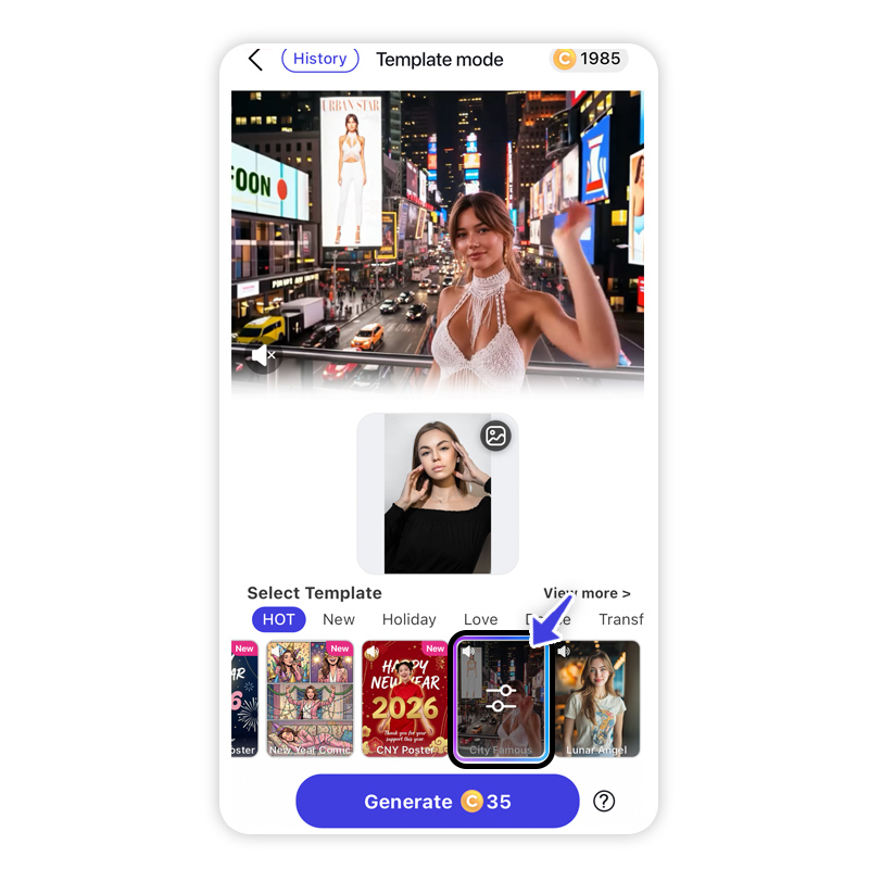 Open the app and navigate to the AI Video section. For the best billboard effect, you’ll want to use the Image to Video feature. This allows the AI to take your static selfie and give it the motion and lighting of a real outdoor display.