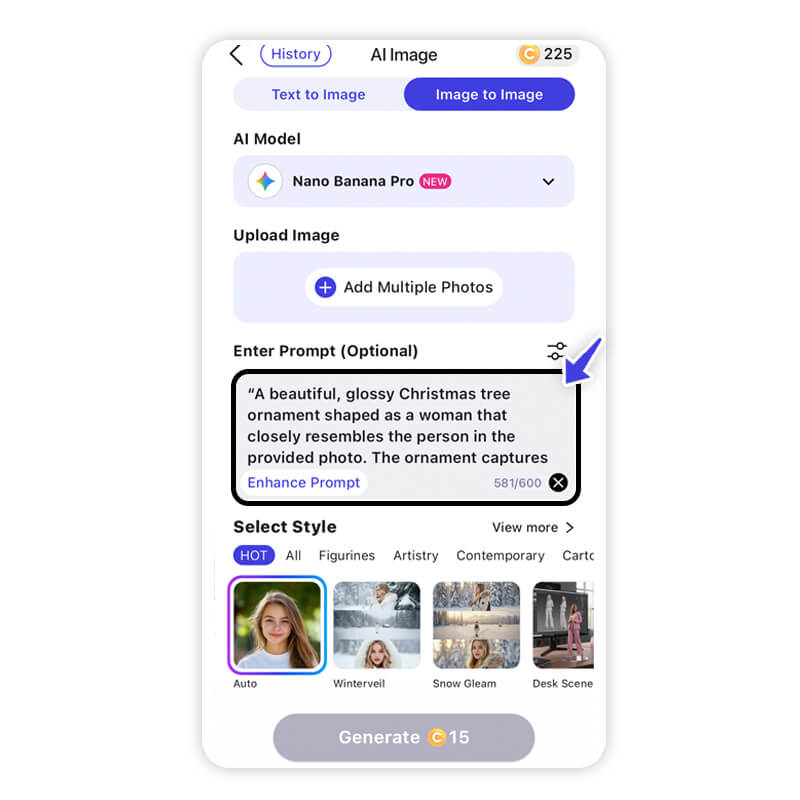 Step 5: Enter the Perfect Prompt for Your AI Christmas Tree Doll