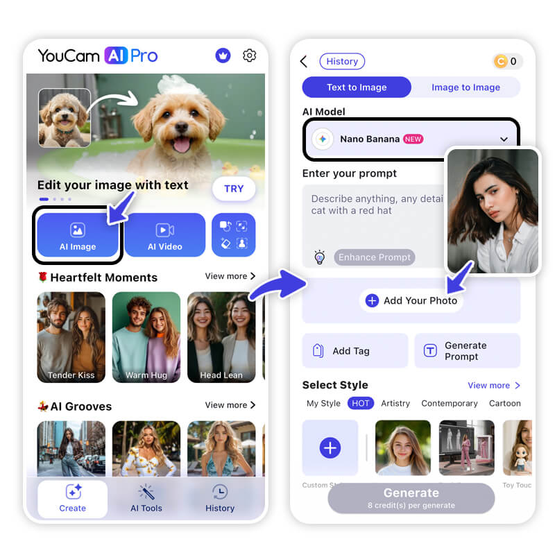 This is where YouCam AI Pro shines. Instead of just relying on text, you can select a specific AI Art Style like “Oil Painting,” “Impressionist,” or “Hyper-Realistic Painting” to ensure the portrait itself has the exact textured, artistic look you're after.