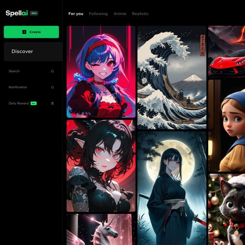 It's great for anime-style AI images, but you can also use the app to generate realistic AI faces, AI girls, AI cars, and more.