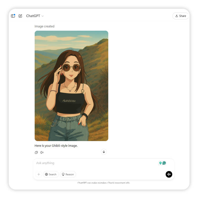 - Save or Share: Once the image is generated, you can save it to your device or share it directly on social media.