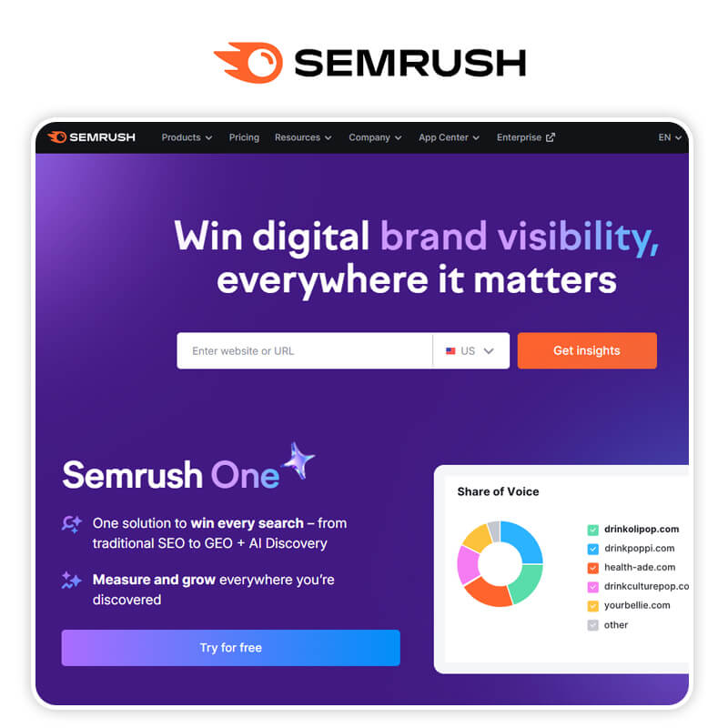 | 5. Semrush | SEO & Competitive Intelligence | Starts $139.95/mo |