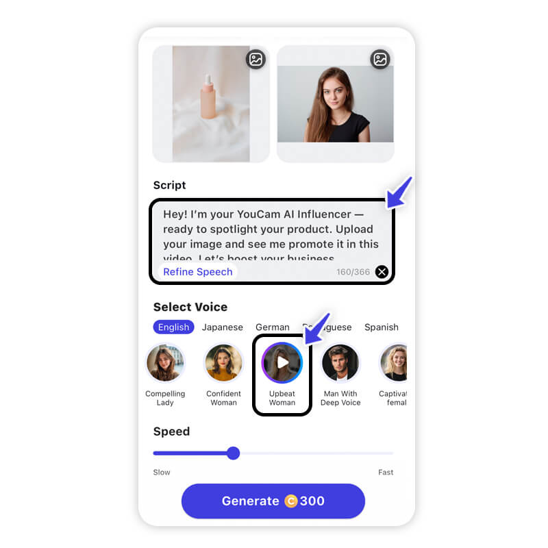 Access 25+ pro templates for beauty, electronic, food & fashion products, you can easily swap your own face, products & voice.
