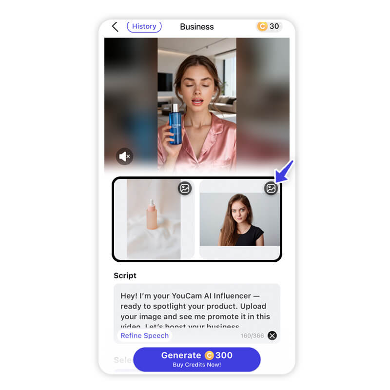 Download the YouCam AI Pro app. On the bottom of the main home screen, look for the "Business" tab.