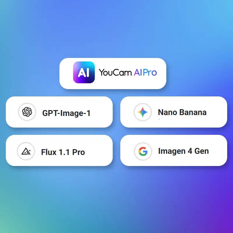 - AI Image Models: YouCam Image 2, GPT-Image 1.5, Nano Banana Pro, FLUX 1.1 Pro, Imagen 4 Gen, and Seedream 4.5.