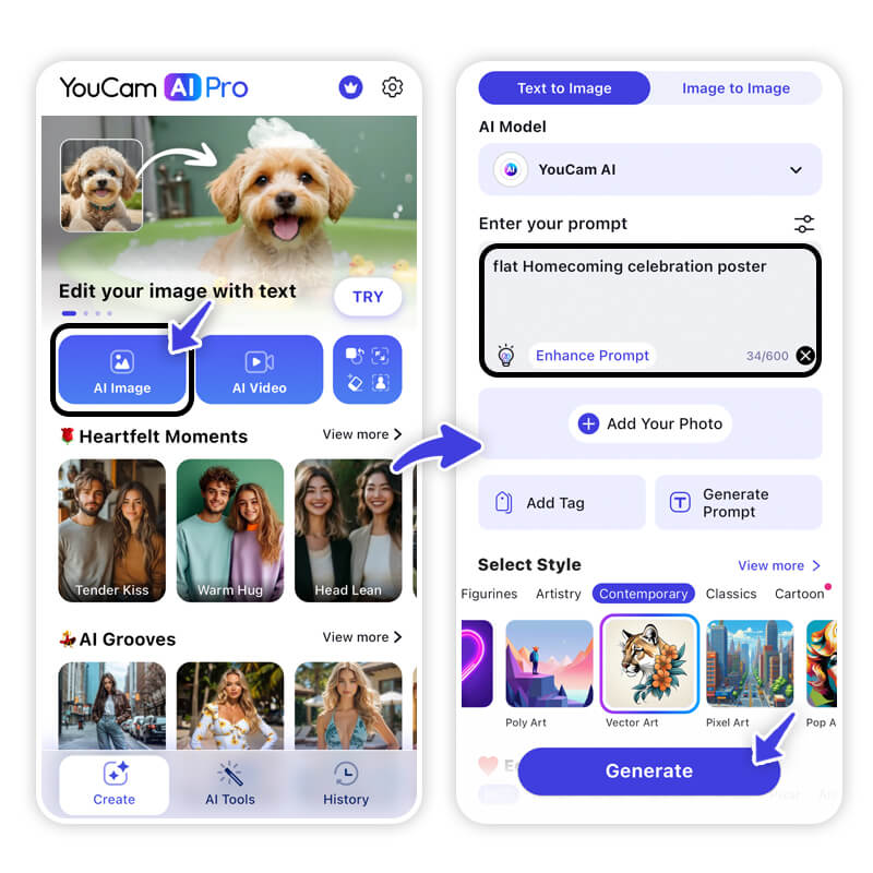 Step 2: Go to AI Image & Enter Your Prompt for Your Homecoming Meme