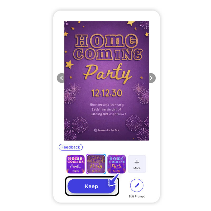 Open the app, head to the AI Image feature, and type in a prompt like “awkward HOCO dance moment” or “glam HOCO squad fail.” The AI will generate a meme base tailored to your idea.