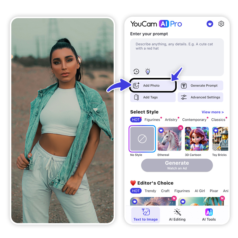 After installing the app, open it and tap the "Add a Photo" button. Choose any image to transform—a selfie, group shot, or even a pet photo. Detailed images give the best results.