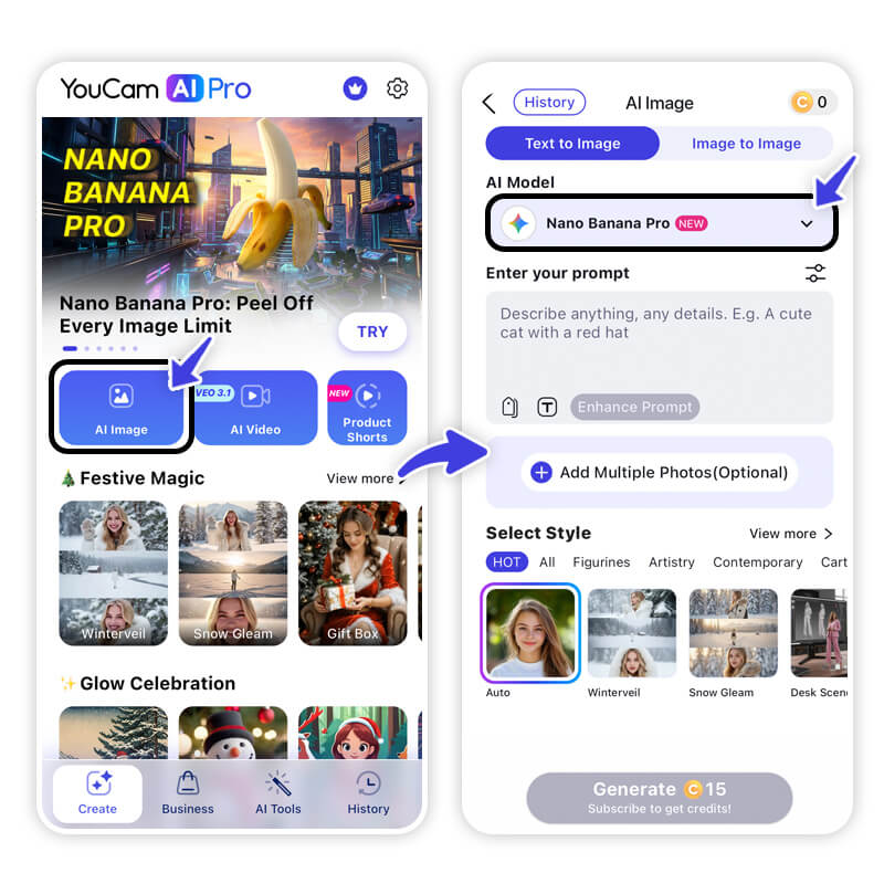 Download the YouCam AI Pro app which features all the best AI models, including Gemini Nano Banana Pro, for image generation all in one app.
