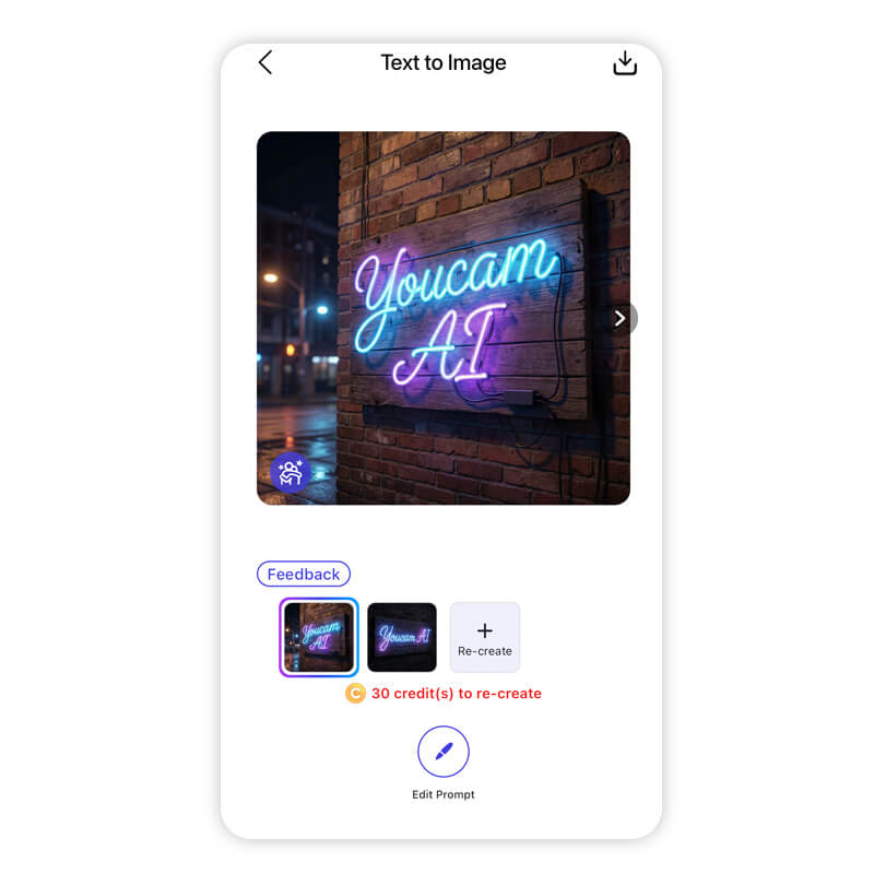 Prompt: A Board With Neon Lights "Youcam AI" is written on the Board With Calligraphy Font.