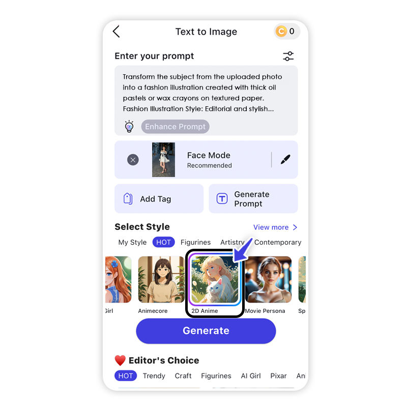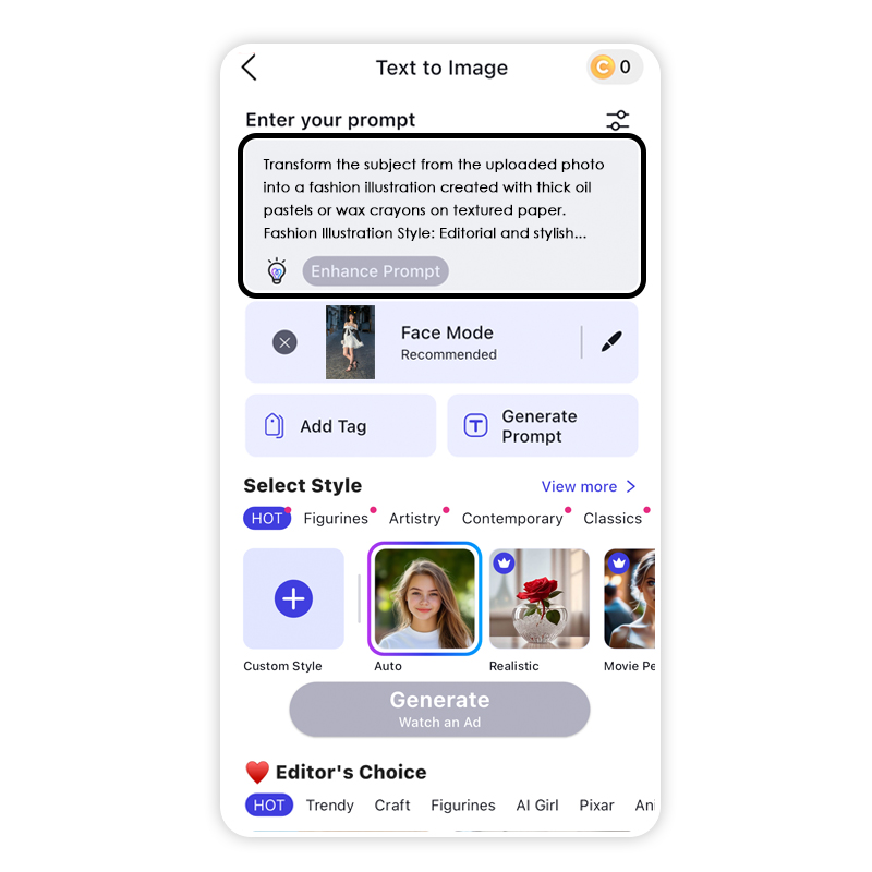 Step 5: Tap "Generate" to Get Your Oil Pastel Fashion Illustration