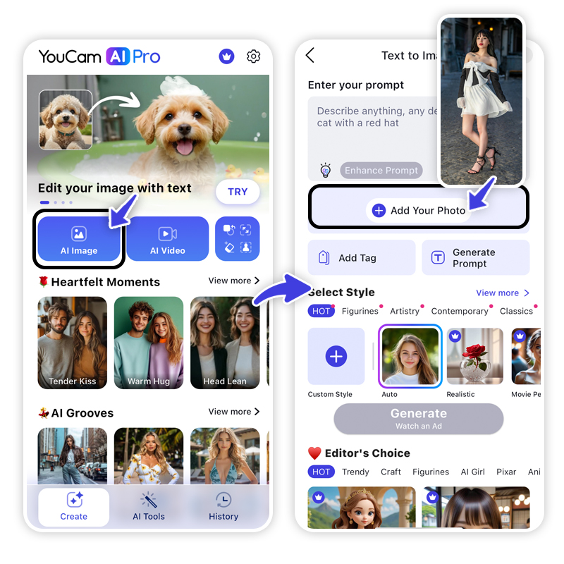 Launch the app, tap "AI Image," and upload your base photo. Whether it's a full-body fit check or a close-up accessory glow-up, it'll set the stage.