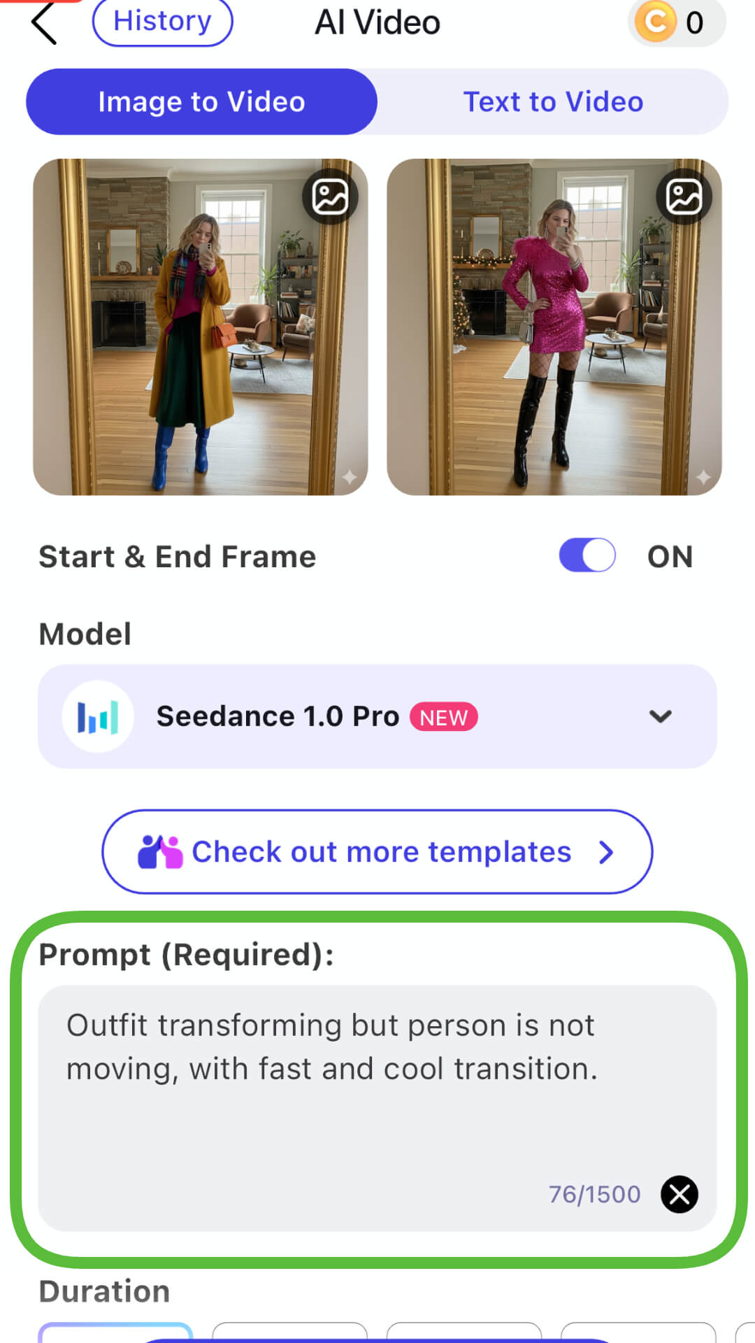 Step 5: Enter Prompt for Outfit Morph Video