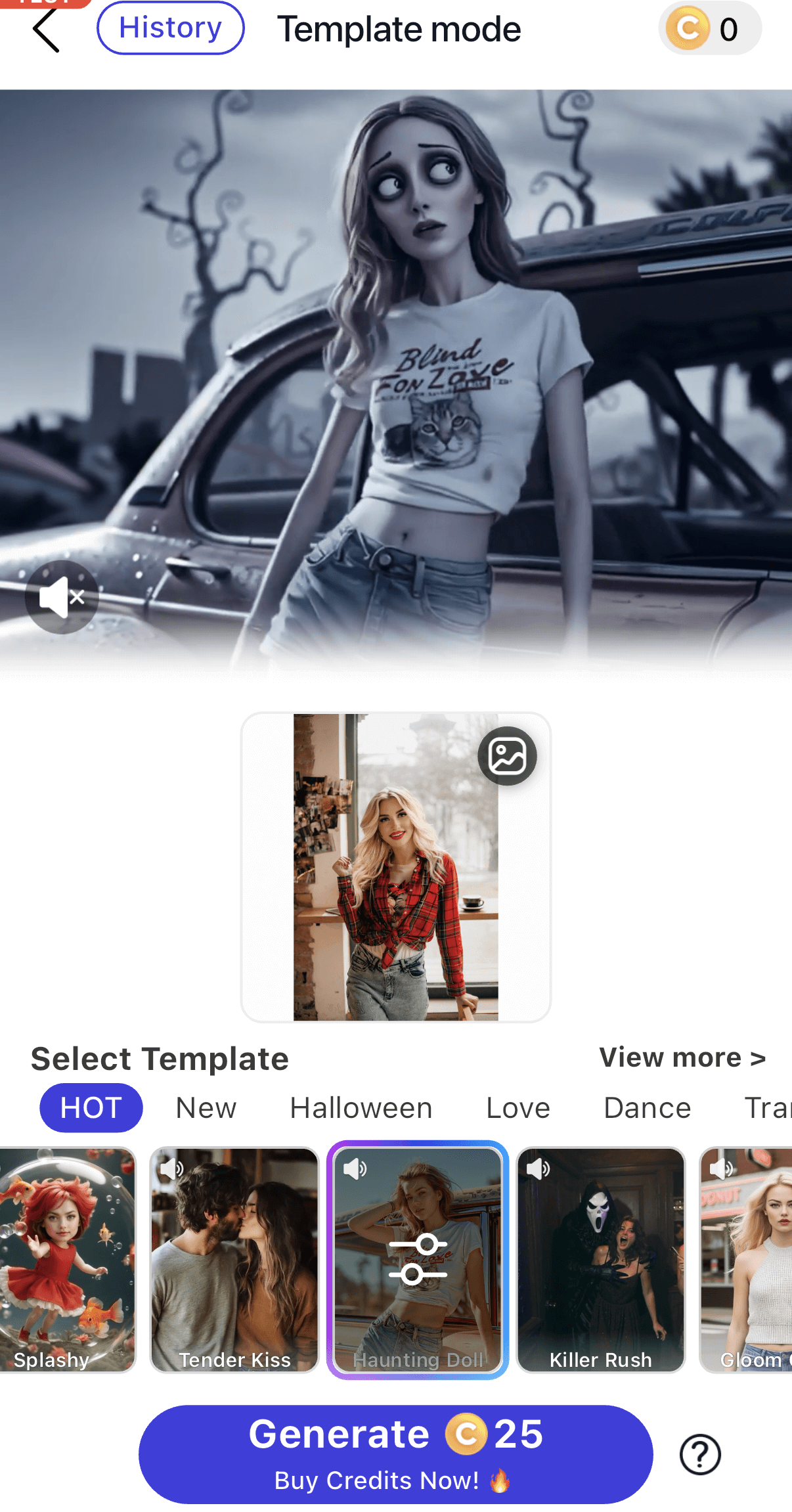 Once your photo is uploaded and the style is selected, simply tap "Generate." The AI will process your image and apply the effect, turning your photo into a unique, animated creation.