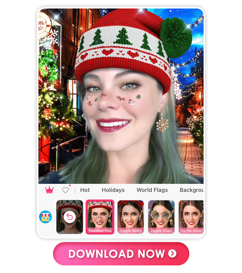 YouCam Makeup lets you get a full face look at once, plus accessories, in seconds with a simple tap. Download YouCam Makeup for the best Christmas filters and editing tools to get started now!