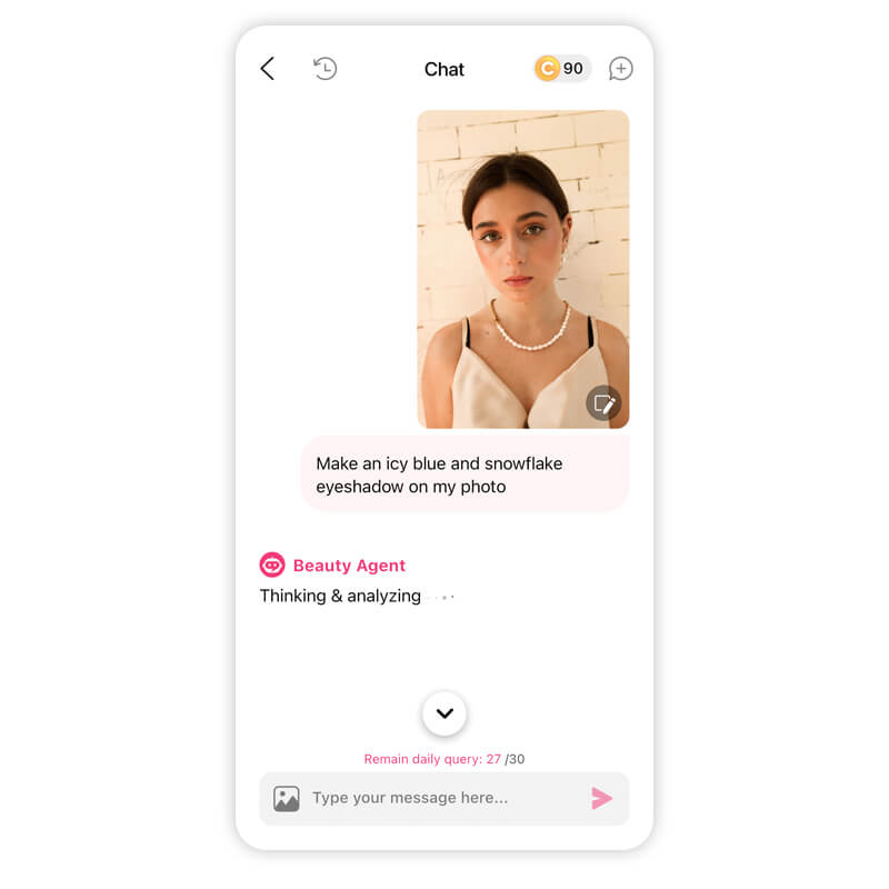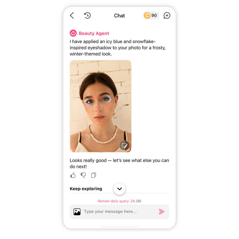 - Describe the look you want to try on. For example: "Give me a Christmas makeup look with frosted silver eyeshadow, velvet matte skin, and a glossy berry lip."