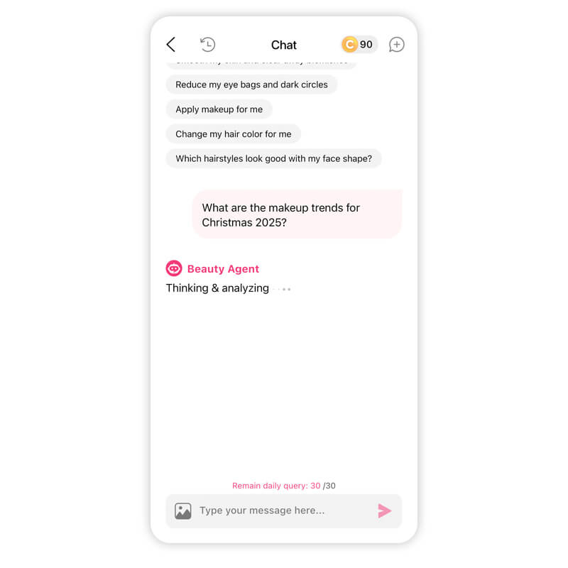 Forget last year's looks. The holiday season in 2025 is all about balance: combining classic festive glamour with modern, high-tech radiance. We used the YouCam Makeup AI Agent to analyze thousands of trending looks, and here's what the pros are saying: