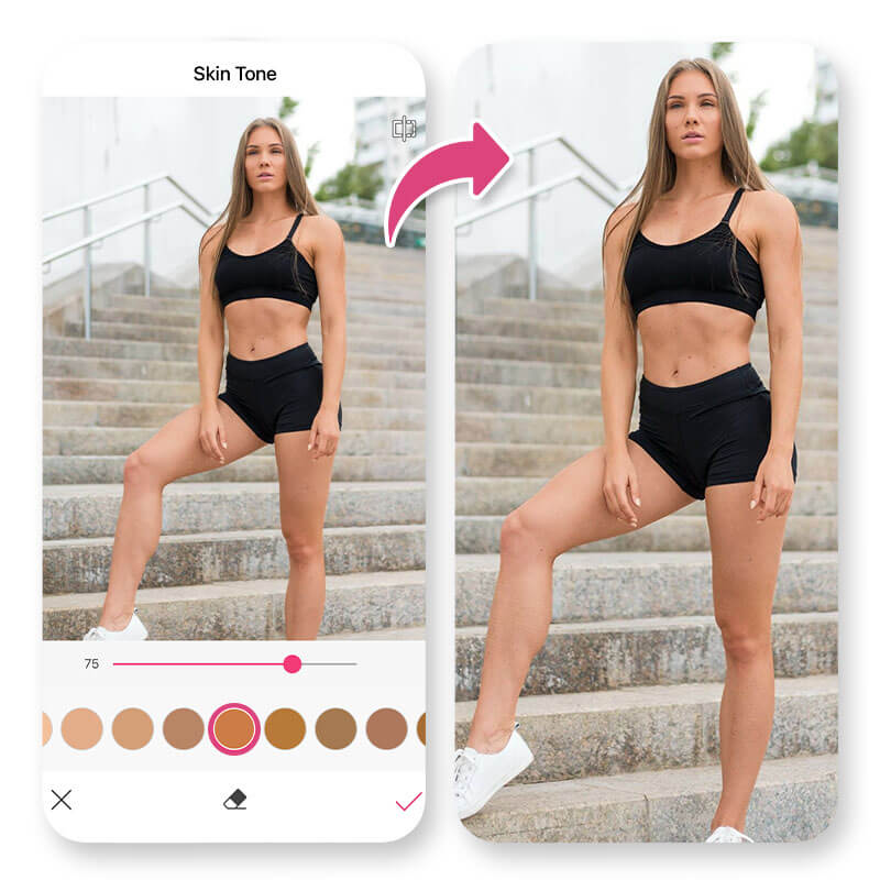 With YouCam Makeup’s Face Retouch – Skin Tone feature, you can instantly preview different honey tones and customize your look in seconds.