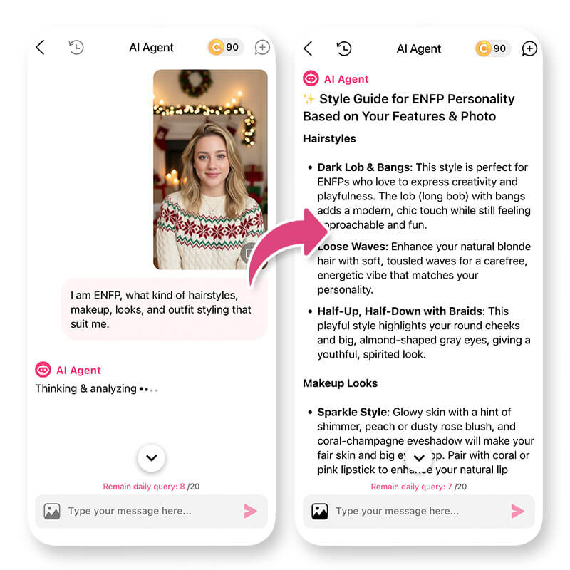 If you want a personalized beauty experience that actually matches your personality type, try the YouCam Makeup AI Style Agent. The AI analyzes your facial features and your personality style, then suggests: