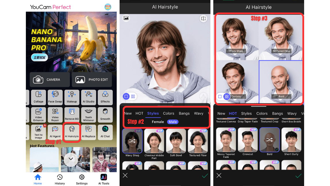 - Open YouCam Perfect and Tap the "AI Hairstyle" feature in the app