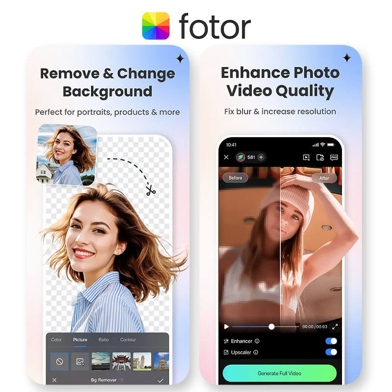 - Key Features: One-tap enhance, portrait retouching, background remover, and AI filters.