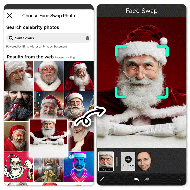 2. Turn into Santa: Face Swap