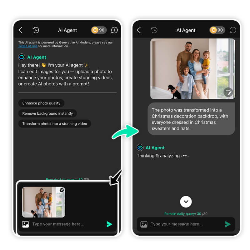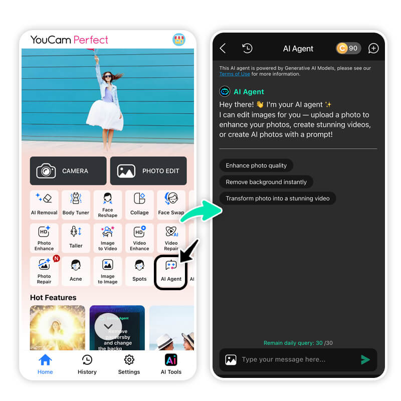 Creating your AI masterpiece is surprisingly simple. YouCam Perfect's AI Agent does the heavy lifting so you can focus on the fun: