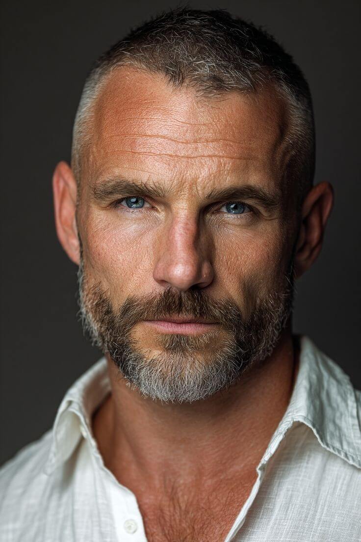 2. Buzz Cut Fade With Beard — Strong, masculine look that blends short hair and beard.