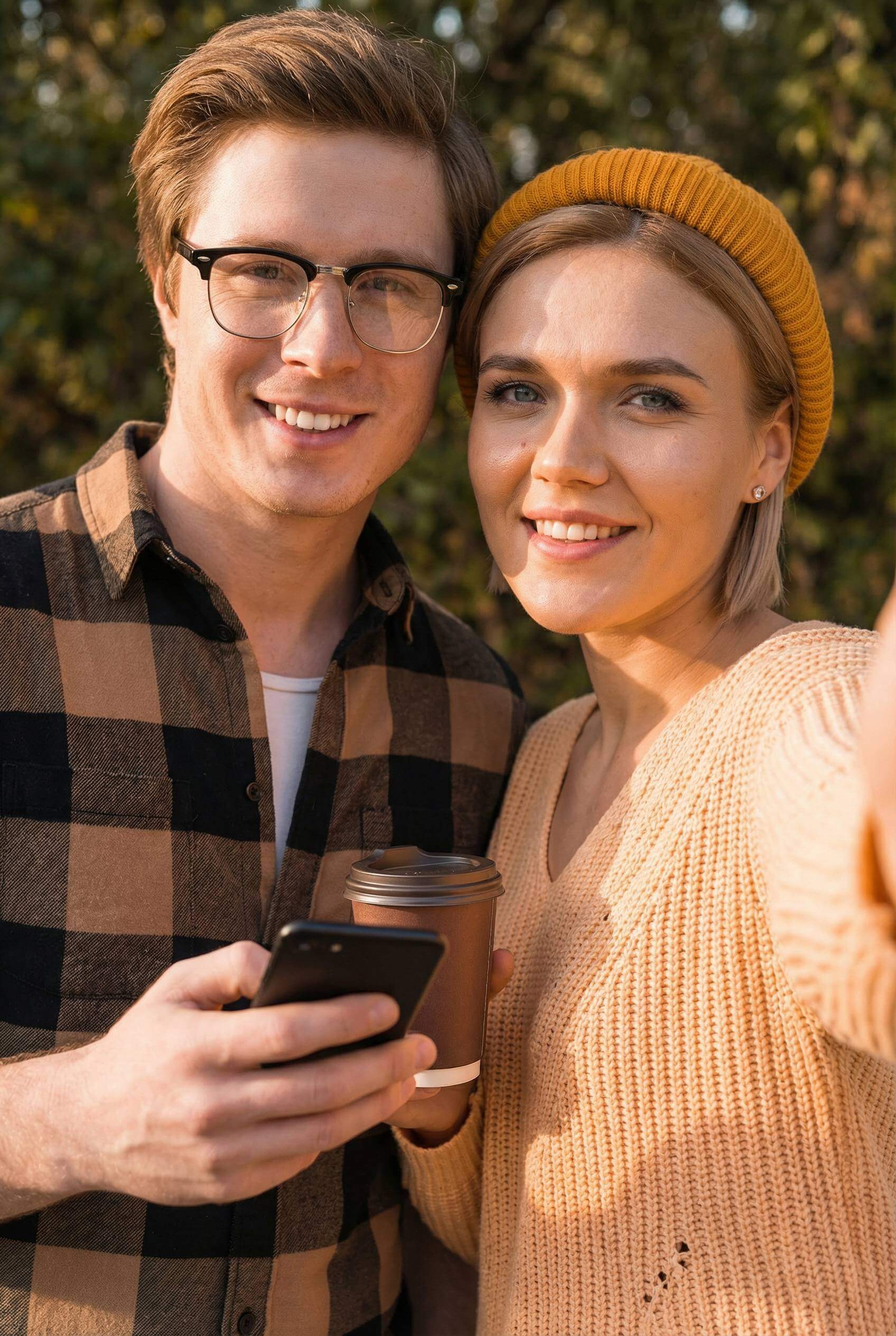Prompt: “Combine two people into a couple selfie, matching lighting, skin tones, and facial expressions.”