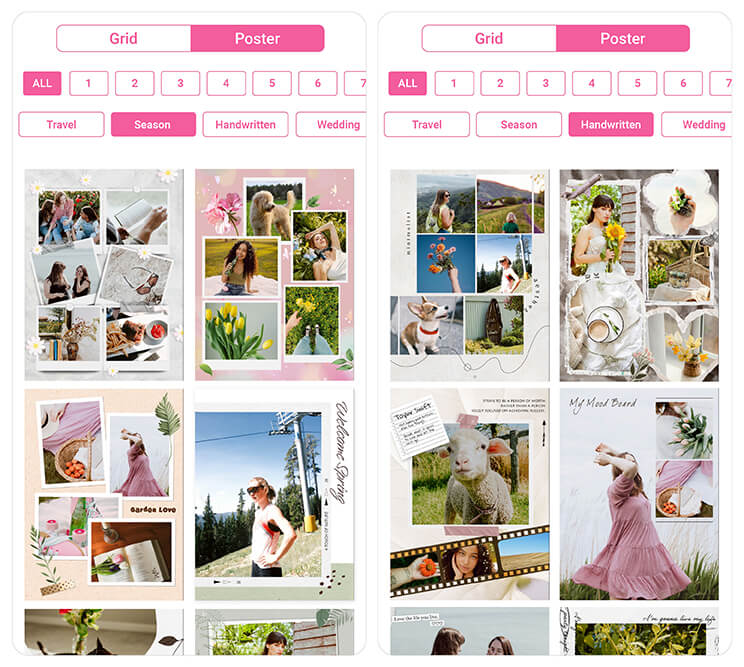 In YouCam Perfect, you can explore a variety of collage styles—from clean and minimal grids to more creative, scrapbook-like designs. For a fresh March aesthetic, go for light, airy layouts with soft spacing or rounded edges to keep everything looking cohesive.
