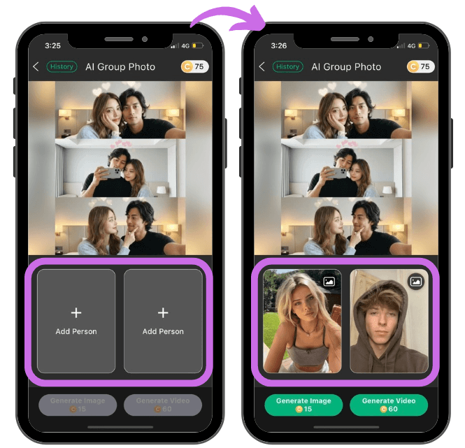 Just snap your shots solo, and let the AI do the rest. It’s also amazing for long-distance couples or when one of you is feeling camera shy.