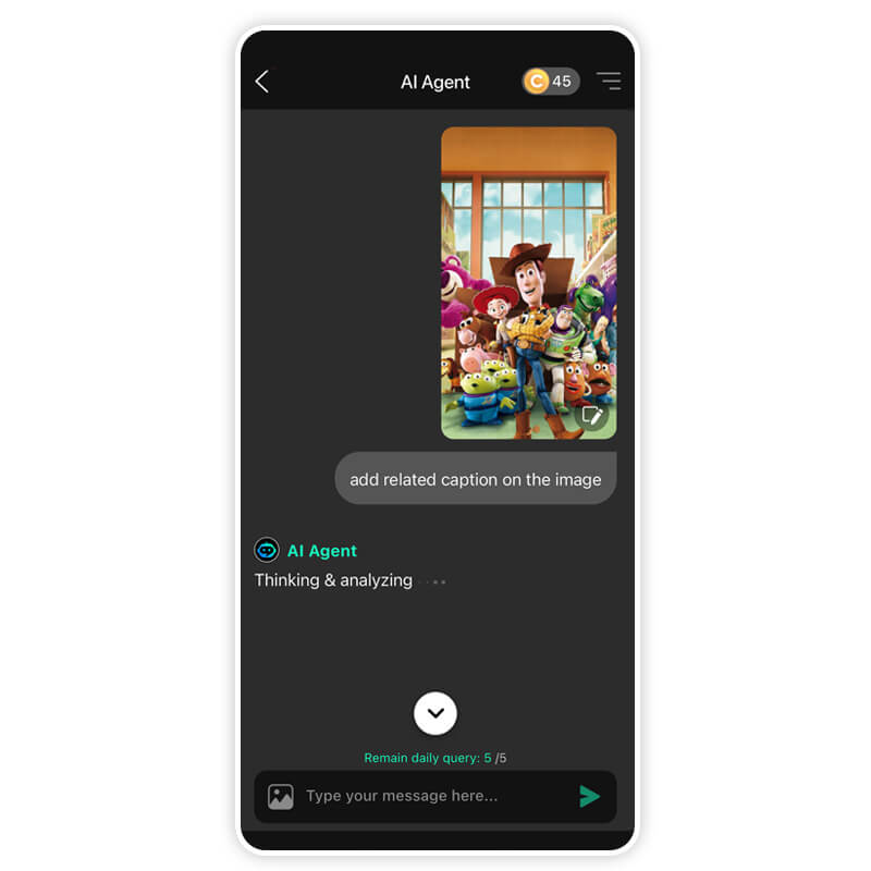Open the app and navigate to the AI Agent feature. This is where the magic happens. Unlike standard filters, the AI Agent understands context and can generate creative text based on your specific needs.