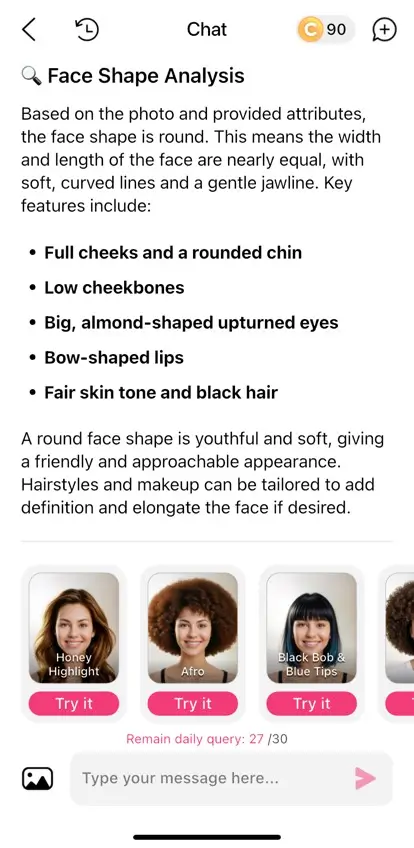 YouCam Makeup makes discovering your face shape effortless. Just open the app, take a selfie, and let the AI Beauty Agent scan your features. You will get instant results that tell you exactly which face type you have and why.