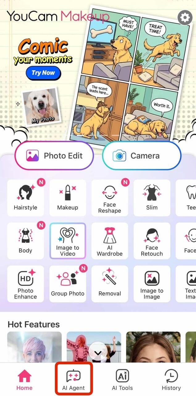 With YouCam Makeup, you can transform your everyday photo into a polished AI-generated portrait using advanced AI Selfie features and a built-in AI Agent that helps you customize your look.