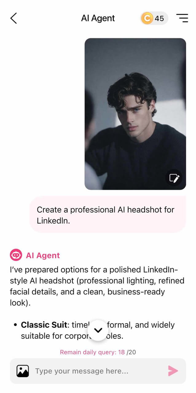 With YouCam Makeup's AI Agent, it is super easy to make AI photos of yourself!