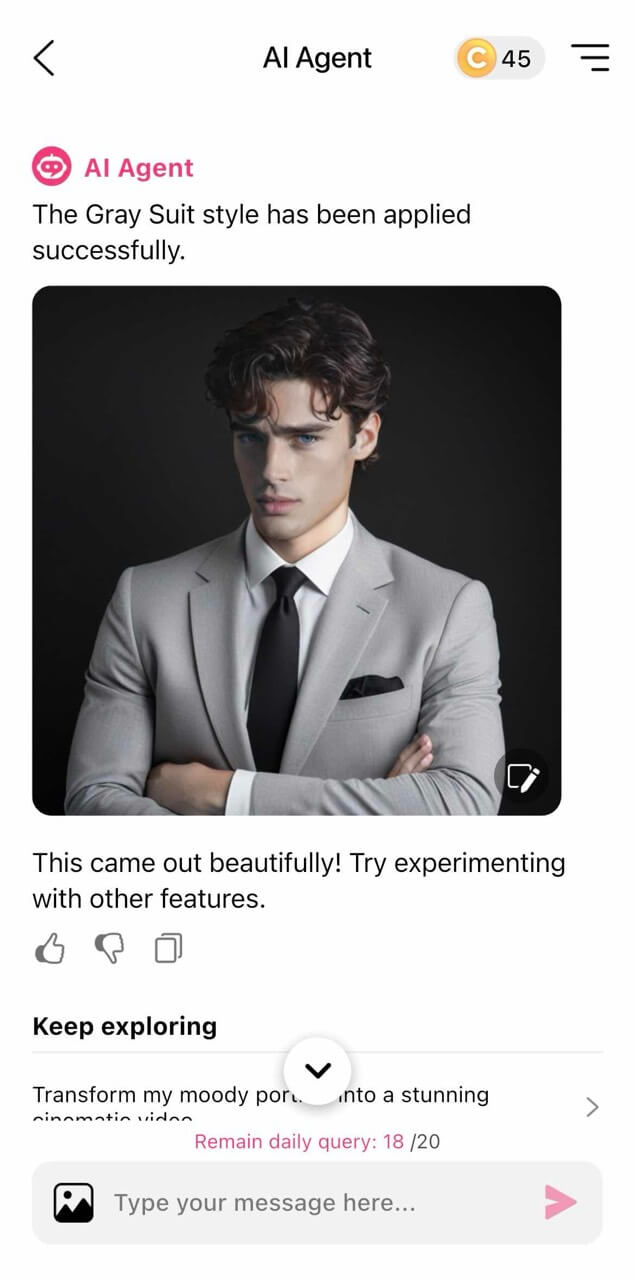 The AI Agent personalizes results based on your request, helping you refine your final image.