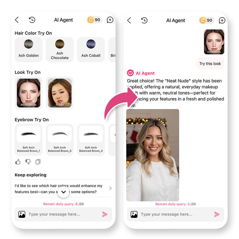 With YouCam Makeup’s Beauty Agent, you can explore your facial features, test your symmetry, and discover the best styles tailored for you.