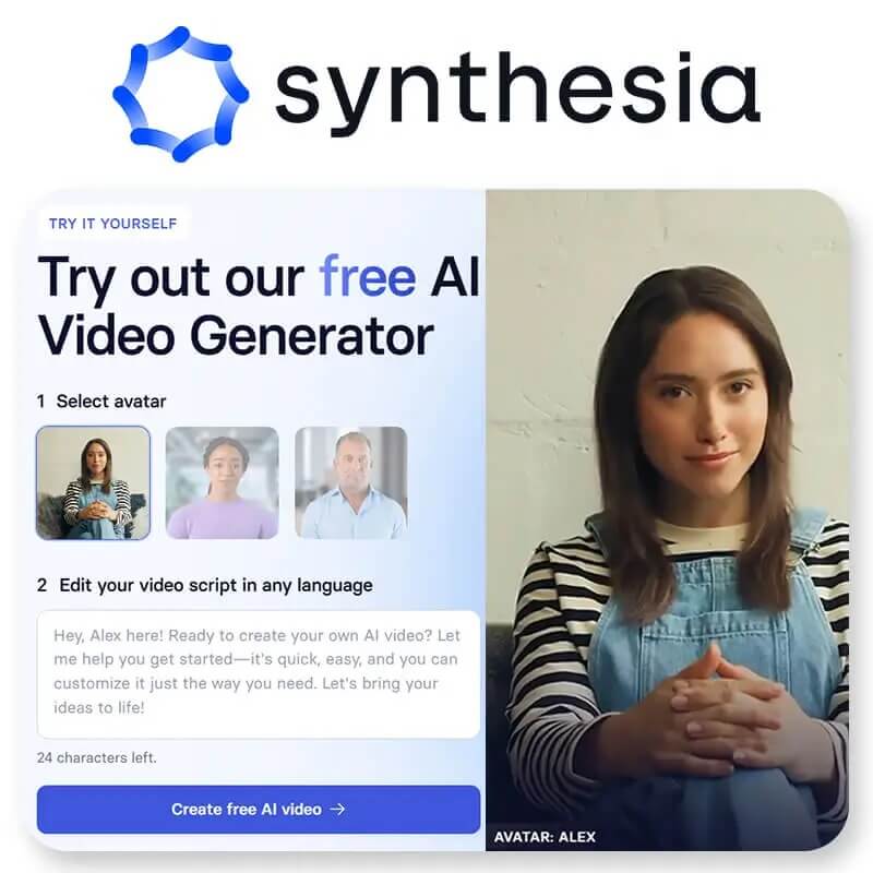 Synthesia is the leader in "AI Avatar" technology. While Sora creates scenes, Synthesia creates people. It allows you to create professional videos with AI avatars that speak over 140 languages with perfect lip-syncing. It is the gold standard for corporate training, educational content, and personalized sales videos.