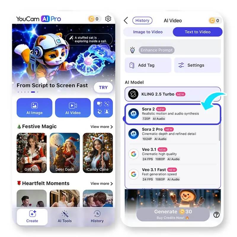 How to Use Sora 2 in YouCam AI Pro