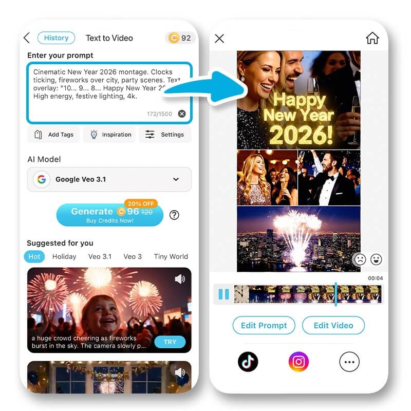- Enter your text prompt for the AI video