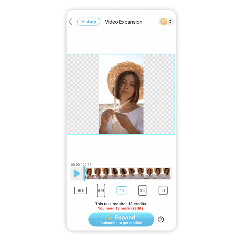 Convert your video to 9:16, 1:1, 16:9, 4:3, or 3:4 without cropping important content. The AI Video Extender automatically extends the frame beyond the original borders.