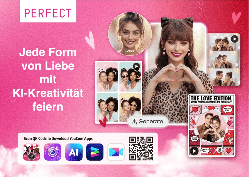 Perfect Corp. läutet einen romantischen Valentinstag mit einer Reihe generativer KI-Features in den YouCam Beauty- und Kreativ-Apps ein