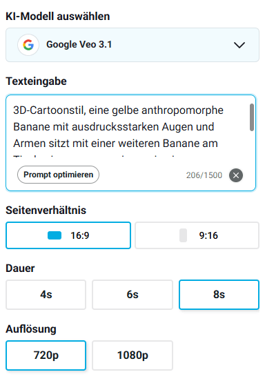 Klicke auf „Generieren“ und lass die Google‑Veo‑KI dein Video erstellen. Der Vorgang dauert in der Regel 30–60 Sekunden. Die KI generiert automatisch: