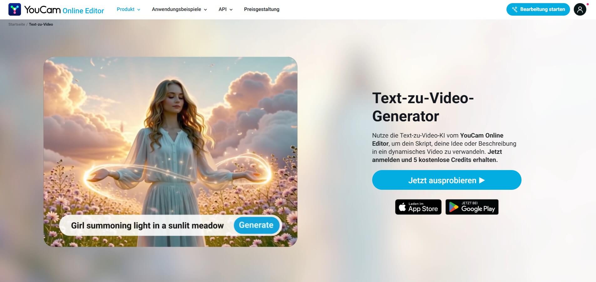 - Online: Gehe zu YouCam Online und klicke auf „Text zu Video“