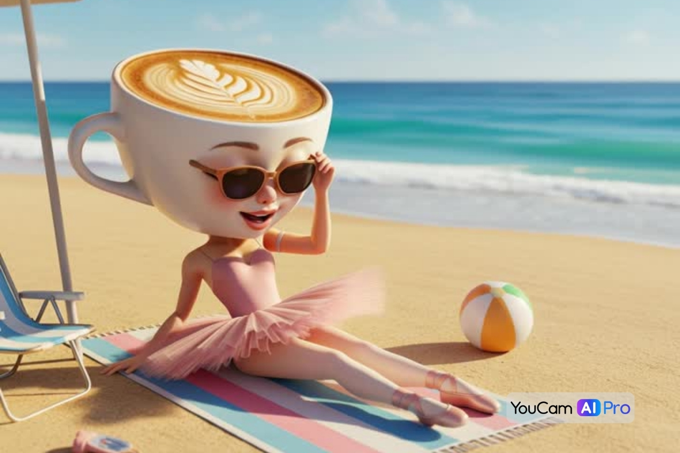 ▲ Erstellt mit YouCam: Ballerina Cappuccina am Strand